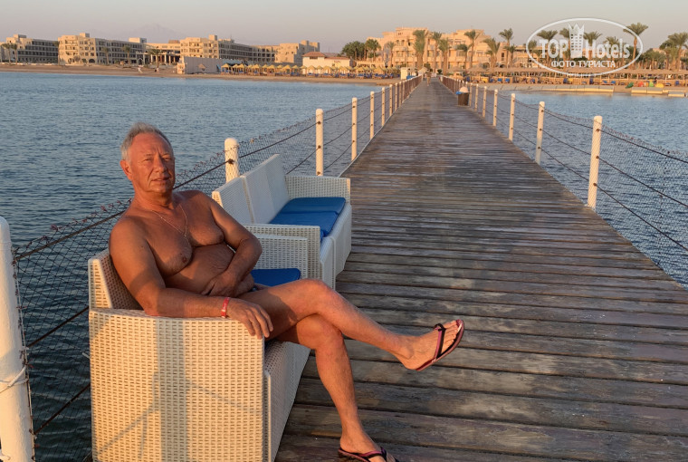 Отдыхали в этом отеле второй раз. Первый раз были в марте - апреле 2024 года. Все очень нравится. Единственное, что ходили на пляж в соседний отель или на пирс, потому, что своего пляжа как такового, нет. Но прогулки всегда полезны для организма. Хочется отметить четкую работу персонала, который в любой момент откликался на наши просьбы и удовлетворял все желания. Нам поставили в номере по нашей просьбе дополнительную кровать-софу, потому что на момент заселения не было номеров твин. Особенно хочется отметить работу официанта в Главном ресторане по имени Mohmed Bodry, а так же в пляжном баре Ibrahim Alsayed. Они были очень вежливы и усердны. Так же всегда уделял нам внимание в баре у Reception официант по имени Mohamd Elsayed. Ещё было очень трогательно, что собрали всех "ветеранов", то есть тех, которые посетили отель не в первый раз, на торжественный ужин в Бич ресторане с живой музыкой и индивидуальным обслуживанием. Понравилась работа службы вызова такси на рецепшн - пользовались несколько раз для поездки в город. Машины все новые и чистенькие, водители обходительные. Также воспользовались услугами массажиста в местном медицинском центре. Не смотря на большую загруженность отеля, на пляже всегда были свободные лежаки под зонтиками. В целом впечатление незабываемое! Спасибо!