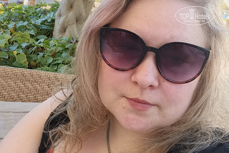 Про территорию. Она немного несуразна. С 0 этажа, т е. где рецепция и лобби бар, спуститься ко всей территории можно через лифт. Очень не хватало спуска прямо с террасы. Также дорога до моря по большому счету тоже одна, получается прогуляться особо и негде. Очень травы, в принципе бесполезной, не хватает диванчиков, мешком, где можно поваляться. Скамейки и качели старые и ненадёжные, а гамаки вообще больше для антуража. А людям пожилым или полным совсем туго. Получается самые удобные места для отдыха - это терраса. Покрытие везде очень уставшее, а местами опасное. Но заявлено, что многое будет меняться или ремонтироваться. А пока везде мрамор с дырками, а по доске вообще не пройти, и я на 2 день подвернула сильно ногу, когда прогуливались вдоль пляжа. Спуск в море - какой-то бред - шатается, покрытие старое и порванное, все в камнях, поручни ржавые, а спускаешься все верно в камни. Ожидали совершенно другое. Опять же для людей полных или пожилых сложно спускаться в бассейны. Есть только шатающиеся лестницы, и нигде нет ступеней, в итоге я с больной ногой купалась 2 раза в бассейне и столько же в море.