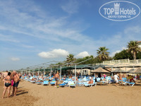 Море, конечно, супер! Песочек, пологий вход. Но лежаков мало! Очень мало! Никогда не практиковала занимать лежаки рано утром, но здесь по другому нельзя. Те, кто выспались и пришли на пляж, лежали на полотенцах или сидели на песке. В начале сезона лежаки были прикрыты от солнца тентами (видела фото). В октябре уже осталась малая часть тентов, вот под ними нужно было занимать лежаки не позже 7.00 утра🤭