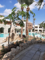 Отель для тихого, спокойного отдыха. Еда понравилась, все было вкусно и разнообразно. До пляжа 7 минут пешком, не напрягает, пляж находится через дорогу и соседний отель. Пляж хороший, большой, всегда хватало всем лежаков и полотенец, заранее занимать не нужно места)) Заход в море хороший, вблизи всегда плавают разноцветные рыбки. В отель нас привезли в первый день в 10ч с аэропорта и пришлось ждать на ресепшене до времени заселения, заселили в итоге после обеда, в 13ч. Территория отеля красивая, ухоженная, чистоту поддерживают каждый день. Вай фай был заявлен только на ресепшене, но к нему было подключиться практически невозможно, в результате пришлось купить местную сим-карту и проблем с интернетом не было везде. Сим карту покупали в салоне местной связи Etisalat за 5 долларов на 28 Гб (действует 90 дней). Номер был стандартный, все чистенько, но мебель старая и шкаф купе плохо закрывается. Сейф, холодильник работали, а вот телевизор каналы на русском языке не показывал. Персонал приветливый, вежливый, на ресепшене каждый день присутствовала русскоговорящий менеджер (многое что может разъяснить, подсказать и уладить все вопросы). Один раз за весь отдых посетили ресторан а ля карт (мексиканский ресторан), но были немножко разочарованы, меню было стандартным, алкоголь и изысканные блюда (креветки и тд.) можно заказать только за дополнительную плату. Магазины (Манго маркет, Фикс прайс и др.), кафе, рестораны и аптеки в пешей доступности от отеля!