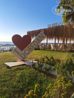 Пляж.Лежаков много всем хватало, заход в море галька,тапки в помощь. Но зато цвет воды нереально красив и какая она чистая.