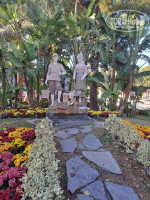 Много насаждений фруктовых деревьев,разных цветов ,пальм..