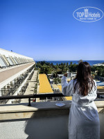 Номер с видом на море. Высокие потолки, много воздуха , номер не убитый, просторный. Шкаф с вешалками, полки, сейф, туалетный столик не большой. Холодильник с мини баром, пополняли каждый день. Кола, вода, минеральная вода и их лимонады в стекле. В номере ковровое покрытие! Тапочки, гель для душа, нитки, рожок для обуви, Стаканчики, чайный набор с чайником присутствуют. Дополнительно принесли халаты, мыло, шампунь, зубные щётки и бритвенный набор.