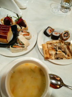 Обед : 3 супа, салаты, холодные закуски, особенно хороши рулетки с красной рыбой или тунцом, фрукты, пирожные есть с фруктами. Горячее не очень горячее.