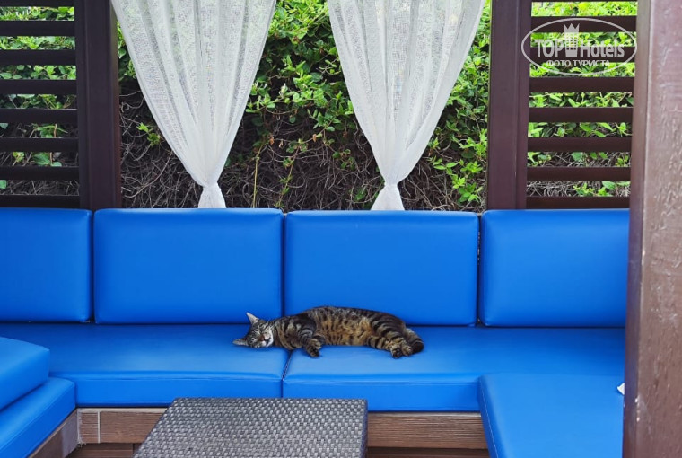 Также на пляже имеются шатры (платная услуга отеля). Шатер - особое место, предусмотренное для компании до 4 человек. Всегда тенечек, есть сейф и минибар. Два лежака и собственный зонтик. В шатре имеется телефон, по которому можно сделать заказ на баре, официант все принесет в шатер. Также в течении дня вам принесут холодное пиво в стекле, арбуз и закуски. Обслуживание работает до 18:00.