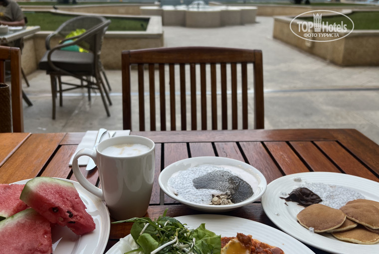Очень понравился отель. При заселении сделали апгрейд номера. Вид на бассейн и море. Еда отличная, мы завтракали в 8 утра, никаких очередей к еде. До моря идти 3 минуты, либо на туктуке. Шезлонгов много. Море очень комфортное, заход в море тоже.