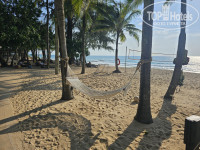 Вышел несколько секунд босиком и ты на шикарном безлюдном пляже кафешки массаж и фрукты ближе всего к этим домикам и вокруг песок и пальмы...