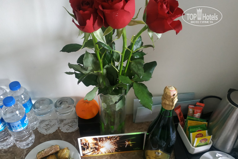 Они поздравили меня с днем рождения. Фото прилагается. (торт, шампанское, розы и открытка).