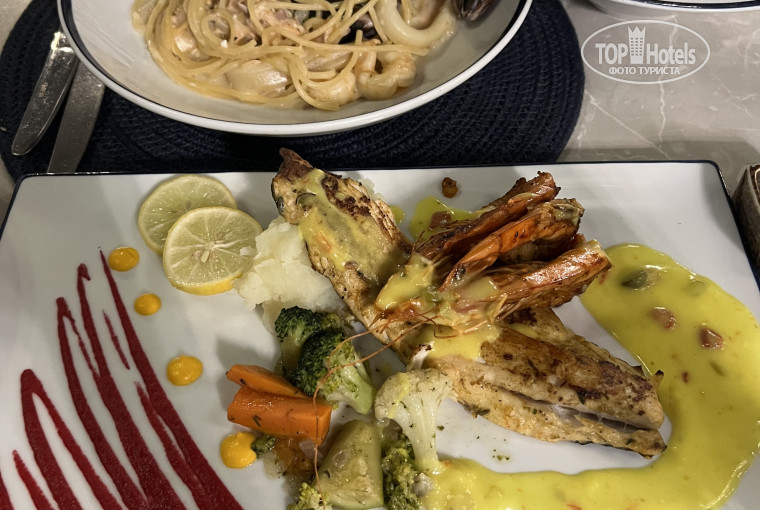 Наш номер был прям у ресепшена и ресторана Люсия, удобно, но по вечерам громко если дети спят, потому с 20:00 до 23:00 туса. Пляж находится в одной минуте от ресепшена с лежаками и обслуживанием.