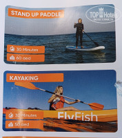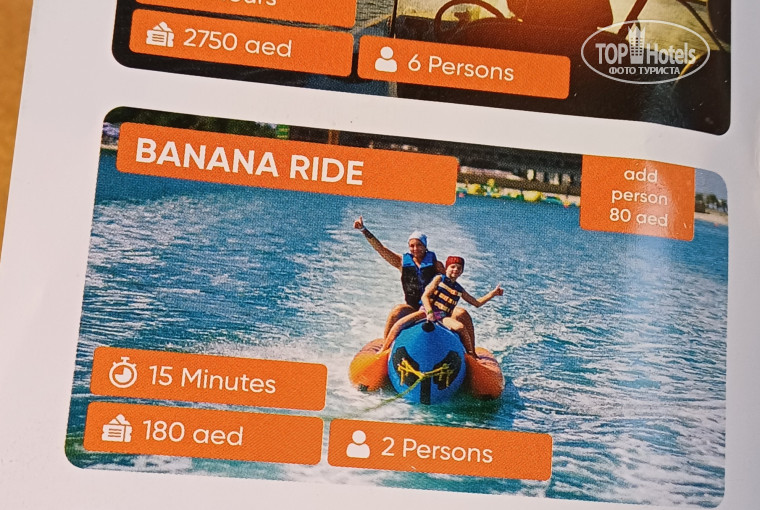 Путь на пляж пока тоже вдоль стройки. Она очень активная и скорее всего через годик закончится. Хотя отель и позиционирует себя как 1-я линия, но все же это 2-я линия, т.к. пляж находится через дорогу общественного транспорта. Есть светофор по кнопке. Но машины туристов пропускают и так. Идти до пляжа минут пять, а по жаре эти пять минут и 200 метров даются нелегко. Но постоянно курсирует «подкидыш», ждать его не приходится). Во время нашего пребывания отдыхающих было не так много, поэтому лежаков хватало всем, даже много было свободных. Пляж находится на внутренней части острова. И это мешает хорошему водообмену. Если снаружи острова вода прозрачная, то на пляже она немного мутноватая. В это время температура воды была 37 градусов, купаешься как в ванной. Вода почти не освежает. Песок чистый, белый. Вечером, во время отлива, мы постоянно находили морских звезд и ежей. Но ежи не колючие, а похожи на плоские медальоны с цветочком. Маленькие рыбки – мальки – почти ручные). Мы их частенько кормили с рук хлебом. Очень прикольно. Рядом с пляжем есть развлечения: байдарки, гидроциклы, бананы и т.п. Но очень дорого как-то, поэтому редко кто пользовался. Прайс есть на фото (если модератор не удалит).