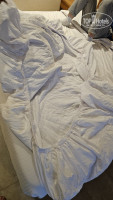 Нас заселили в ужасный 2х местный номер - 4х человек! Принесли 2 доп кровати разваленные. Грязные матрасы. Вместо одеяла ребёнку принесли наматрасник. Номер 4110 весь убитый. Всё старое, ободранное, не рабочее. Телефон не работал, сейф сломан был, кнопки слива унитаза отваливаются, вода в раковине не смывается, выход на балкон сломан, туалет не закрывался до конца-пришел ремонтник, вырубил часть дверного косяка))). Полотенце дырявое. Карта от номера одна на 4х человек!