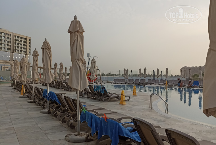 Мы ездили на всё включено, включая алкоголь. Имейте ввиду, алкоголь в ОАЭ можно только с 21 года. Если нет 21 года, на рессепшн Вам дадут красный браслет, по нему алкоголь ни в одном баре не дадут. Кормили очень вкусно. На входе в ресторан (слева) пекут очень вкусную пиццу. На завтрак есть вафли. Всегда работают кофемашины и можно набрать горячую или холодную воду. Мы были не в сезон, но из-за цены отель был битком! Так как на улице была жара 40 градусов, а по ощущениям все 50, все ели в помещении под кондиционерами. Поэтому найти места на компанию из 6 человек был ещё тот квест. Около 60% туристов было из Казахстана, остальные русские, несколько пар из Белоруссии. Местные тоже были. Женщины в "купальниках в пол", в столовой с закрытыми лицами... Но их единицы было.