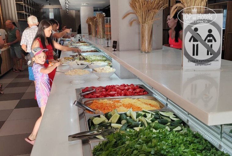 Питание в отеле на высшем уровне — всё очень вкусное и разнообразное, официанты стараются, чтобы всем всего хватило.Номера очень комфортабельные и чистые, с ежедневной уборкой. Ремонт свежий, мебель современная. Пляж ухоженный с шезлонгами.
