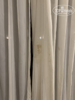 - Уборка (0/10): это еще хуже, чем ремонт. Первое, на что падает внимание, что после ремонта (не понять сколько десятков лет назад это было) ничего не убрали: по всюду куски краски, шпаклевки. Это настолько въелось уже, что выглядит очень ужасно. Далее шторы - тут просто бинго, какие то огромные черные патна грязи (посмотрите фото и сразу поймете ситуацию). Над кроватью есть декоративный "сборщик пыли" - его видимо убирали последний раз более года назад, т.к. когда я провел по нему - палец был черный. А ведь мы дышим всей этой пылью. Пол весь в разводах и по всюду пыль.