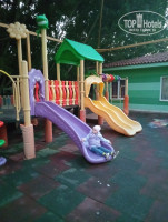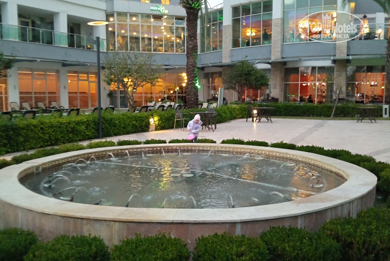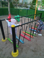 Территория довольно большая. И, огромнейший плюс, что зеленая и супер ухоженная, не смотря на декабрь. Очень приятно гулять. Садовники каждый день что-то делали и следили за чистотой. Все бассейны были заполнены водой. Есть небольшое футбольное поле, где можно с ребенком поиграть в футбол, есть детская площадка (очень неплохая): горки, лазелки, качели, карусели.