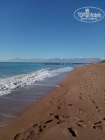 Пляж: Большой, широкий. Очень чистый песок. Камешки только у воды в небольшом количестве. Очень ухожено, следят за чистотой. Бычков и иного мусора не было. Пирс был разобран. На пляже были лежаки в достаточном количестве. Есть небольшая зеленая зона с лежаками возле бара и ресторана. Установлены качели для инстаграмных фоток.