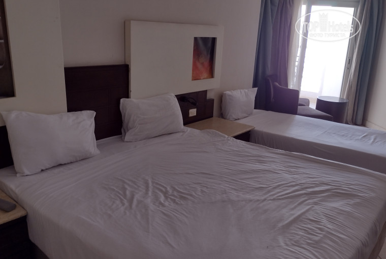 Отель, на мой взгляд, весьма приличный. Питание на "5" - достаточно разнообразное и вкусное, большой выбор десертов. Пятиразовое! Номер, по крайней мере мой, - на "4-". Оборудование староватое, но всё работает как надо. За неделю один раз сменили белье и два раза убирались. Расположение отеля - на "4". Вдали от шума, но в пределах пешей доступности от магазинов и прочего. Минус один балл за отельный пляж. Далеко (40 минут, если пешком) и как-то неустроенно. Был только один раз, купался, впоследствии, во время морских прогулок. Белье меняют, за неделю дважды убирались. За чистотой и порядком следят хорошо. Отзывчивый персонал. Совет - распечатайте и отдайте при заезде рекомендательное письмо. В целом - очень понравилось! Большое спасибо персоналу отеля за приятный отдых!