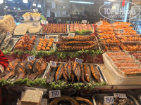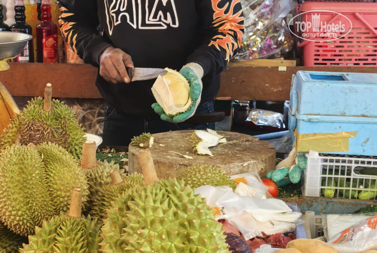 Дуриан и крокодила попробовали. Дуриан едят сразу после разделки, через 15 минут запах сероводорода появляется. Вкус у него сливочный, правда суховат был,сейчас не сезон для дуриана. Фрукт не дешёвый, маленький 250 бат примерно и сразу продавец очистит его. Крокодил как недожаренная курица с ароматом рыбы, много не съешь,одной маленькой порции за 200бат на двоих хватит.