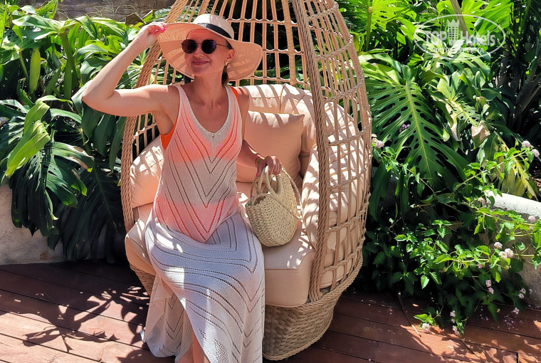 3. Территория заслуживает множества комплиментов. Много цветов, зелени, сад с фруктовыми деревьями. Симпатичные локации с гамаками, диванчиками и беседками. Отдельный бассейн с горками, бары и красивенная кофейня с десертами, вином и вкусным кофе. Территория не сильно большая, но все компактно размещено и очень уютно.