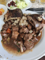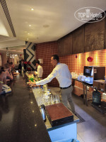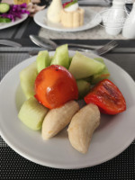 В ресторане всегда есть свежие порезанные отдельно овощи (огурцы, помидоры, болгарский перец, капуста пекинская, краснокочанная, белокочанная, лук, перец чили), есть уже готовые разнообразные салаты. Есть отдельно заливки для салатов (на вкус как сметана), мне понравилась с соком помидоров, и несколько других видов. Несколько видов твердого сыра и колбасы (не понравились), сыр фета (вкусный, но пересоленный на мой вкус, зато с ним салат не надо досаливать). Несколько видов булочек (белые, черные, серые), вкусные, свежие. Попробовала панкейки-оладьи (тут же жарят при тебе) – не понравились. Всевозможные сладкие булочки, круассаны, печенья, а на ужин и пирожные-торты. Из фруктов дыни, яблоки, мандарины, апельсины, хурма (вяжущая), финики (не сладкие, на вкус – как трава). На ужин готовят мясо и рыбу, шашлык из курицы, лепешки. Еды очень много, всегда можно найти что-то на свой вкус. Был отдельный стол с «детской едой». Предполагаю, что там пицца-макароны-картошка фри. Из напитков на ужин есть вино красное, белое, пиво в розлив. Несколько видов чая, сахара, кофе-автомат, автомат с разными газировками-соками. Официанты очень стараются, но физически не успевают накрыть-убрать, народу очень много. Проблема найти столик, многие занимают столики, а потом ходят берут еду. Мы после нескольких малоудачных попыток сесть с уже полной тарелкой, тоже начали занимать заранее. Несколько раз занимали столики на свежем воздухе. Но, стоя мы не ели ни разу, всегда находили место, бывало, подсаживались к другим гостям. Многие с удовольствием соглашались. Так что, было бы желание, и эта проблема решаема.