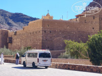 Из-за упавшего на Синае самолета с туристами, усилены меры безопасности. Автобусы собирают туристов по отелям, выезжают за город, останавливаются все вместе и ждут сопровождающую машину с вооруженной автоматами охраной. Едем до края административной территории, там караван автобусов передают следующей вооруженной охране, и т.д. Из-за этого всё очень затянуто, отнимает больше времени.