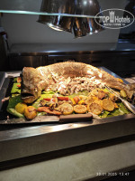 Питание в отеле было отличное: десерты как в хороших кофейнях, в индивидуальной посуде и в нарезанном виде, эклеры, детей радовал шоколадный фонтан. Мясо(баранина, говядина, курица) и рыба были всегда в разных видах, овощные блюда - печеные, на пару, в виде лазаньи. Был отдел с чистыми продуктами - огурцы, помидоры, натертая морковь, оливки и тд., маринованные закуски, вяленые томаты, сыр: пармезан, дорблю, чедер. Для детей картошка фри(всегда, не по запросу как ранее в отзывах писали), нагетсы куриные или рыбные палочки, макароны. Лично мне понравилось, что всегда были салаты со свежей зеленью - руккола, мангольд. Пополняли опустошенные мармиты тоже сразу. К еде никаких претензий! Повару похвала! Все было очень вкусно! Номер комнаты нужно назвать при входе, но это не обязывает к посещению всеми проживающими единовременно. Только контроль оплаченной системы питания. Мебель в ресторане нужно обновить - морально и физически устарела.