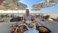 Питание. У нас была концепция НВ – двухразовое питание завтрак-ужин, отличалась она от «олл инклюзива» лишь тем, что она позволяла взять газированные напитки в пляжном баре, плюс у них был обед. В остальном особых преимуществ не было, просто на пляже счастливым обладателям «олл ин» браслетов наливали кофе. Один раз давали мороженое на пляже всем желающим. Был отличный выбор еды, поэтому нам хватало и двух раз. На завтрак хороший выбор овощей и фруктов, плюс блюда на пару, яйца в любом виде (яичницу с начинками готовят при тебе) и каши. Кофе из автомата очень неплохой. Порадовали пакетированные соки на разлив, не химозные. На ужин курица, шаурма, паста которую готовят при тебе, как и шаурму, говядина, через раз пересушенная, но съедобная, блюда на пару, различные салаты 5-6 видов, наггетсы, рыба жаренная, тушеная и в панировке, баранина, паста с морепродуктами и холодный салат с ними же, различные виды десертов и много свежих фруктов (арбуз, дыня, консервированный персик, яблоки, груши, апельсины, лимон, финики, чернослив). Голодными точно не уйдете, блюда не острые, правда, стоит покритиковать за излишнее использование зиры в мясе-перебивает вкус. В ресторан по вечерам, особенно, на выходных, приходят местные с семьями и кушают вместе с постояльцами отеля.