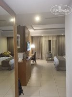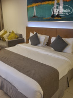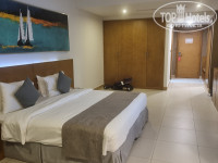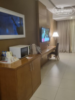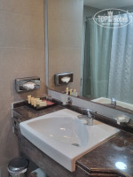 Отдыхали семьей с 6.02.24 по 13.02.24. Изначально бронировали стандартный номер с видом на море с запросом на 1 большую кровать и этаж повыше. Приехали в отель в 20.00 вечера, нам быстро оформили все документы и дали большой номер на 11 этаже с балконом. В номере большая кровать, 2 тумбочки, диванчик с журнальным столиком, мягкое кресло, стул, зеркало, шкаф с сейфом, гладильной доской, утюгом, большой телевизор с русскими каналами и прекрасным качеством картинки, микроволновка, чайник, холодильник, 4 пакетика чая, 2 пакетика кофе, 2 упаковки сливок, сахар белый, коричневый и сахарозаменитель, 2 бутылки воды по 0.5л. В ванной комнате ванная со стекляным ограждением и дополнительной тканевой шторкой, фен, шампунь, гель для душа, лосьон для тела, шапочка для душа, санитарный пакетик, набор из 4х ватных палочек и 2х ватных спонжей, мыло. Муж пользовался косметикой отеля, ему понравилось. Не понравилось только мыло, которое очень плохо мылилось и пахло не вкусно.