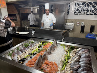Еда разнообразная, мясо, курица, морепродукты каждый день. Сезонные фрукты, апельсины, мандарины, айва, финики, клубника, виноград. Десерты, выпечка. В общем на любой вкус. Рядом в пешей доступности есть ночной клуб.