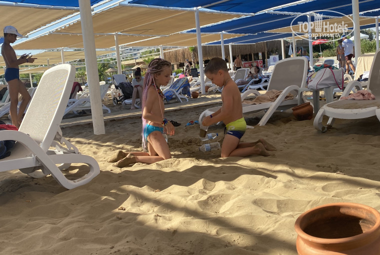 Отдыхали 2021-м году. Заселили нас ближе к двум. Как приехали сразу одели нам браслеты. Пляж шикарный. Идти до него минут пять, но часто ходит шатл. На территории отеля есть детские развлечения и анимация детская. Есть детская комната. Анимация каждую вечер, шикарный представление. На Территории отеля есть бассейн где можно купаться только +18. А то отдыха остались только положительные эмоции. На баре в ресторане у пляже всегда можно попить как газировку чай кофе так и алкоголь.