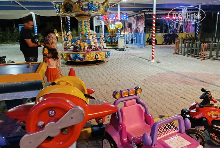 Основные развлечения проходили вечером на пляже. На пляже находился амфитеатр, где проходили различные анимационные представления в основном для детей. По окончания детской программы иногда ди жокей включал песни, приглашая потанцевать взрослых. Однако, учитывая, что почти все отдыхающие были с детьми, по окончании детской программы народ отправлялся в отель. Так же на пляже имелись: бильярд, настольный футбол, различные детские карусели, электромашинки. Все это было за дополнительную плату. Ориентировочная стоимость 2 евро. Мне не понравилось отсутствие специально выделенной площадки для электромашин. В итоге дети катались хаотично по асфальтированных пешеходным тротуарам, периодически врезаясь в идущих людей.