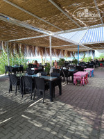 На пляже находился бар (из алкогольных напитков только пиво и вино), ресторан, где можно было перекусить разными гамбургерами, салатами, наггетсами, фруктами и, наверное, еще чем-то, выпить чашечку кофе из автомата или турецкого чая из чайника. Бабушка готовила лепешки гезлеме с разными начинка. Так же предлагалось бесплатное мороженое (очень вкусное!).