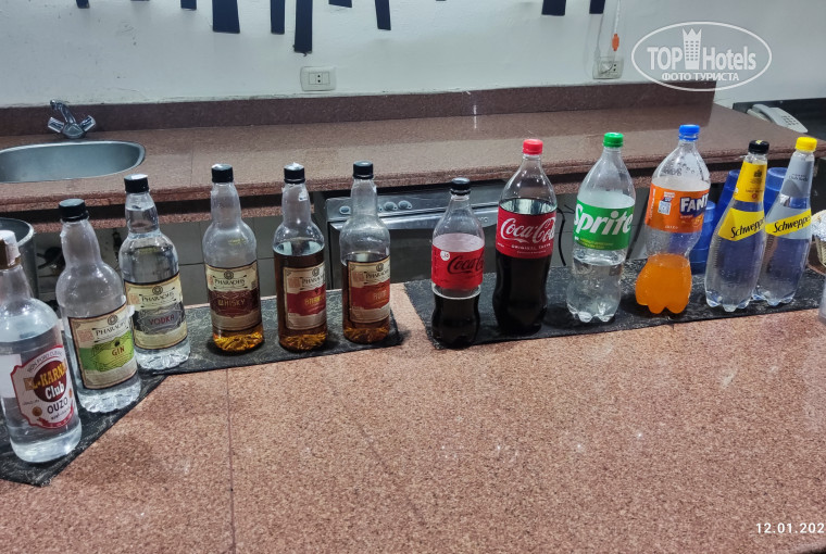 В номере пополняемый запас воды - по 1,5 л на персону, кофе Нескафе и английский чай, сахар, сливки. Запасы эти пополняли без проблем, как и туал.бумаги - какой-либо экономии тут замечено не было) Полотенца и постельное меняли тоже без проблем - уборщики и их шеф периодически интересовались, всё ли хорошо). Был и телевизор с парой русских каналов - один раз включили, больше не понадобился). Горячая вода была всегда, без проблем. Замечали мелких комариков - берите фумигатор. Ну, или тут приобретёте)