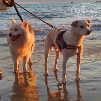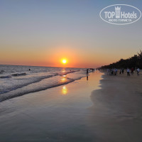 Пляж песчаный, заход плавный, лежаков около 20, в принципе почти всегда можно было найти место, многие лежали на песке. Песчаные блоки меня покусали, хотя на песку не лежал, только на лежаках. На пляже грязновато, вечером на заходе сонца приходя молодожены на фотосессию, как то насчитал 12 пар.