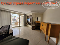 И вот вхожу на ресепшн и и и он меня шокировал , маленький и убого выглядит я даже в тройках таких не видела ( в Египте 7-ой раз ),на кресла страшно сесть ( грязнущие ) , темнота , как в подъземелье ,с полуживых цветов листья на полу валяются. Администратор по русски не бельмеса .Что - то бормочет.Догадалась , что ещё не 10 и завтрак мне не положен . Сидела разбиралась со своим Т 2 , который автоматом стал подключать меня и списывать деньги , благо звонок бесплатный .Средства вернули . Далее пошла по территории , у ресторана пекли блинчики , жарили яишенку , вилочку сказали взять в ресторане . Зашла , вышибалы на входе не было , браслеты никто не проверял , позавтракала как нормальный человек и кстати испробовала смузи ..Вернувшись на ресепшн , одели браслет ( кстати качественный , резиновый ,даже в Эмиратах в декабре был из ткании ) .Номер мой стандарт , пошли предложения и .1) N 125 вид на шлагбаум и кучу мусора , моё нет . 2) 118 чуть лучше вид , но 2 кровати , зачем ? Опять нет .3) 218 Вид на бассейн и рестораны алякарт, нормально , да . 2 этаж , над магазином и вайфай доступен, а так только на ресепшн,хотя и на территории был замечен .Спасибо сотруднику его все босом зовут и носильщику ( имена свои озвучить отказались).Номер огромный чистый , похоже после ремонта ,за исключением дверей ,мебели куча , вот только шкаф из позапрошлого века справа портит весь интерьер ( фото приложу ) ,окна панорамные зеркальные , днём солнце отражает и ты всё видишь , тебя нет,плоский телек , каналов русских много , только искать не очень удобно и они в основном информационные по которым поносят Россию , особенно по свободе один пропог..дон и по другим все иноагенты свои 5 копеек втыкают.Не понимаю , кому они тут в Египте интересны ???