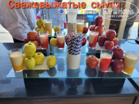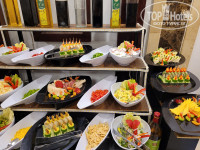 Ресторан .Блюд очень много, что - то вкусно , многое не пробовала , за 7 дней не реально Мясо много ,в разных вариациях.Был микс из морепродуктов , крабы , кальмары в кляре ,какие- то птички фаршированные ( переводчик перевёл ПЕРО ), наверное перепелки ,что - то накручено типа ролов всяких разных ( для меня невкусных ) начинка -овощи) ,фрукты есть , а главное клубника .Рыбка красная , и смузи на завтрак из манго и клубники , апельсиновый сок ( только не приходите рано, в 8 + только ещё распаковывают замороженые большие пакеты , не торопясь взбивают , разливают и где- то к половине 9- го разносят .)