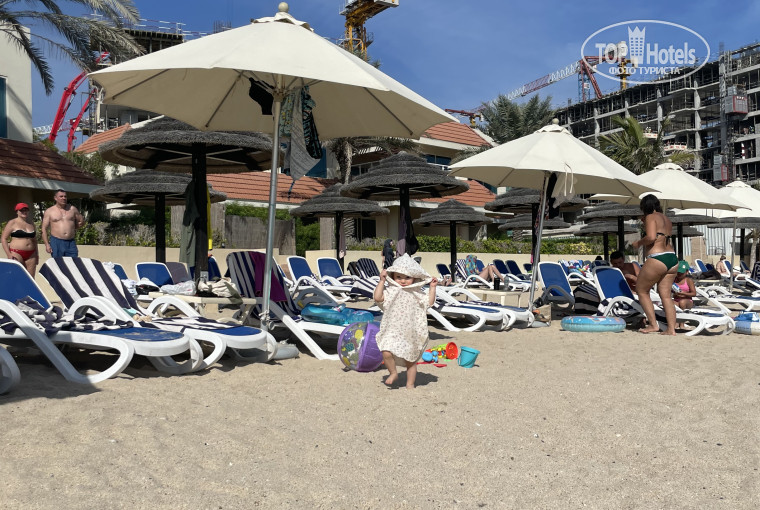 Пляж достаточно большой, ухоженный. Лежаков хватало, мы приходили часов в 9-10 свободные были в основном только те, что подальше от берега. Много лежаков на которых отдыхают полотенца
