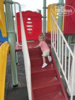 На территории есть детская площадка: две горки и качели, узнала только когда приехали) Помогало немного скоротать время с непоседливым малышом. А и еще батут и детская комната с кучей разных игрушек.