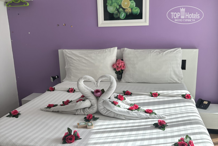В номере было все чисто, так как мы поехали после свадьбы и наш тревел- агент указал эту информацию в заявке, нам еще украсили номер и положили фирменное мыло в качестве комплимента. Уборку делали каждый день, так же каждый день меняли постельное белье и полотенца + приносили две бутылочки воды по 0.5. В данном отеле депозит у нас никто не забирал и наличие пятен на белье не смотрел. Хочу отметить, что в номере нет места для хранения вещей от слова совсем. В углу висит штанга и 5 вешалок - все))) имейте это в виду. В ванной комнате были и гель для душа и шампунь - очень кстати приятные и хорошие по качеству. Кондиционер новый, мы ставили на +25 холодный воздух и на ночь это было комфортно.