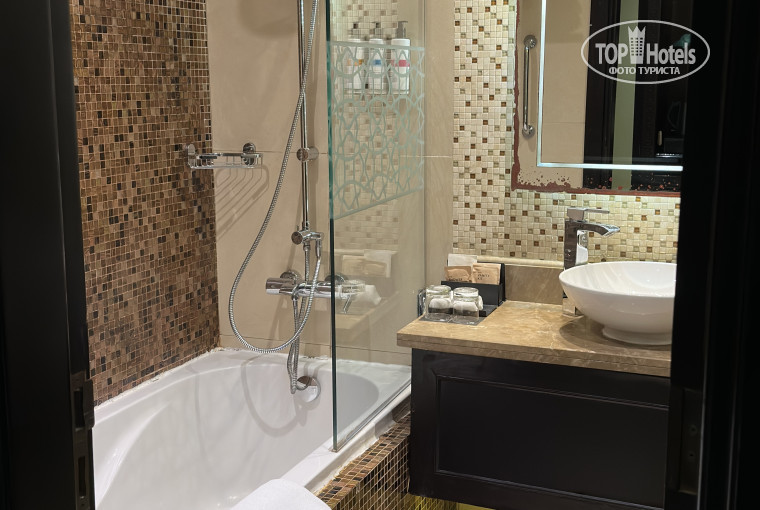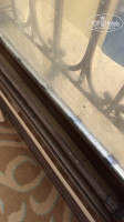 Мебель не плохая, но шкаф при входе не закрывается, а он с подсветкой, причем подсветка выключается при закрытии🫣. Ванна грязная, волосы и налет внутри, неприятно. Зеркало уже облезло, стены в ванной обшарпаны, есть пятна. Гель для душа на донышке, жидкое мыло тоже, нужно просить. На постельном небольшие дырочки, не принципиально, но есть. Халаты только по запросу. Сейф не работает, у нас по крайней мере.