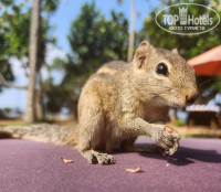Небольшая. Но зелёная, ухоженная. Бегают бурундучки, их можно кормить орешками, взятыми с завтрака, они берут с рук, почти не боятся. У дерева живёт варан, не самый крупный, но все же уже не ящерка. Птички разные. Комары и мошки... Я бы советовала взять что-то противомоскитное, потому что меня реально сильно покусали. Но почему-то меня одну из моей семьи. Антигистаминное против зуда тоже пригодится.