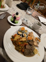 У отеля два основных ресторана, еда просто божественная, разнообразие очень большое..особенно на обед и ужин. Каждый день были роллы, фрукты, обалденные десерты, рыба, говядина, курица, множество овощей, рис и прочее, давали пару раз креветки, мидии, часто были кальмары )) Вообщем еды реально много. Особенно десертов💔