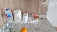 2. Номер: новый, чистый. Телевизиор с каналами на разных языках. Холодильник, в ктором есть вода 5 бут, и кола. Чайник, кофе, чпй и сахар!Шампунь мыло гель для душа сомо собой!сейф, вешалки в изобилии. У нас был 1 этаж. Дерь балконная закрывалась без проблем.