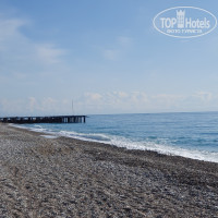 Пляж: мелкая галька, широкий пляж, очень много лежаков под тентами, постоянно дежурит спасатель.