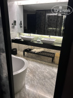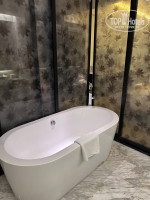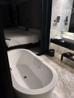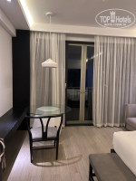 Просторные номера, две раковины, и ванна и душ, перегородки в ванной прозрачные))), на туалетную дверь можно повесить полотенце, кому не комфортно. Диванчик, стол со стульями и места много. И все номера основного корпуса имеют вид на бассейн.
