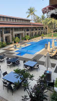 Здание 2-этажное построено буквой П. На первом этаже бар, снек (кокос целый 120 рупий), на втором ресторан. Есть СПА, тренажерный зал.