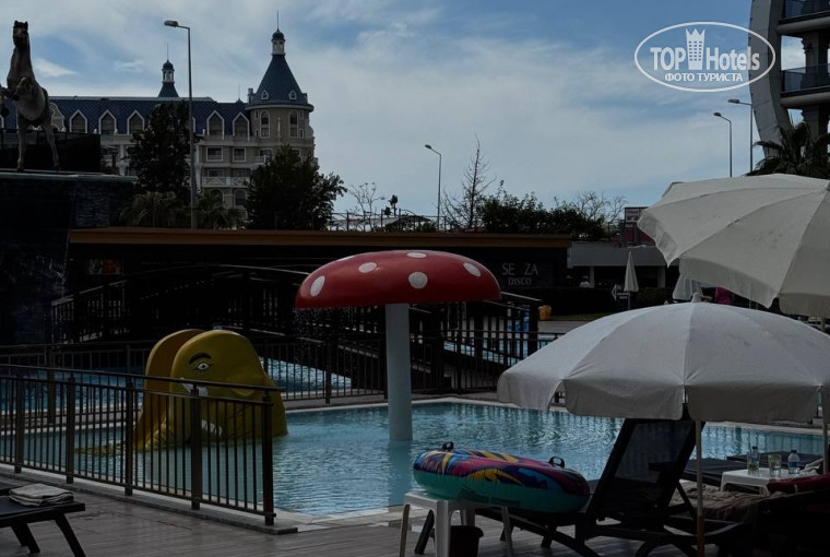 Отдыхали с семьей в данном отеле, думали приехать летом, тк сезон, но в апреле отдохнули тоже очень классно, людей не очень много, всегда свободные лежаки есть, аквапарк в отеле большой плюс, еду найдете везде и кормят очень вкусно, несколько ресторанов, приветливый персонал и достаточно русскоговорящих, рекомендую однозначно и мы вернемся еще раз