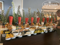 Питание-рыба есть всегда, не семга, но Дорадо, сибас и тп. Все вкусно. Роллы - не рекомендую. Пахлавы особо нет. Только вечером. Лукум без орешков. Зелени полно, все очень вкусное.