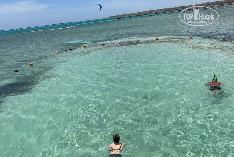 В первой половине дня можно купаться с берега, в это время прилив, и поэтому не так мелко. Но нужна спец.обувь, на дне много камней. Так же на пляже есть пирс, с котрого есть два спуска. Первый находится довольно близко к берегу и открыт всегда: глубина местами по шею местами по колено. Дно чистое, спец.обувь не нужна. Можно поплавать с маской, под пирсом плавают рыбки. Второй спуск в конце пирса, идти около 10 минут. Там сразу глубоко, буйков нет. Можно взять бесплатно жилеты. Обязательно берите маски, рыбок очень много. В первой половине дня, как правило, этот спуск закрыт из-за ветра и сильных волн.