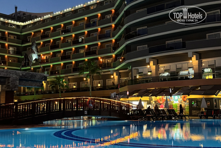 Приехали 6-го в обед,нас сразу заселили,сходили покушали ,есть главный ресторан и так же пиццерия где можно в меню выбрать все что вам хочется ,достаточно разнообразно ,номером довольны ,нам достался большой с видом на аквапарк ,до моря не далеко ,так же постоянно возит транспорт ,хорошая атмосфера в отеле ,персонал приветливый ,ребенку очень нравится в мини клубе ,вечерняя программа тоже хорошая ,мы всем довольны ,хочется чтобы время не пролетело так быстро ,вернемся еще и будем рекомендовать данный отель